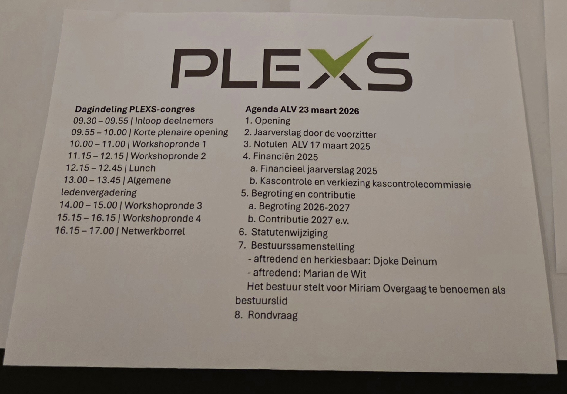 PLEXS Congres en Ledenvergadering vandaag